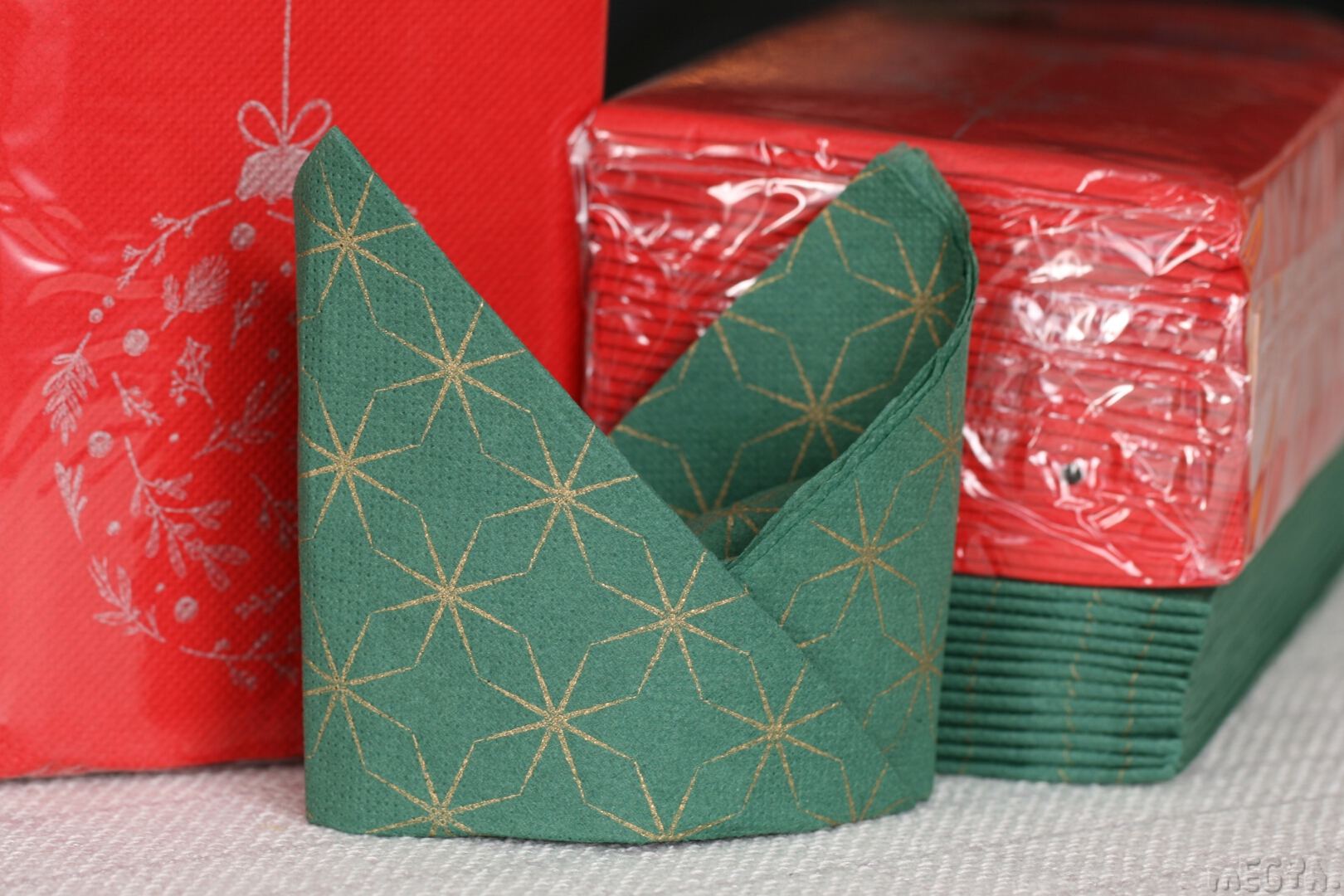 Piros vagy zöld szövetű, arany vagy ezüst ünnepi mintával van nyomva – igazán fenséges kiegészítője a karácsonyi asztalnak! És majdnem úgy lehet hajtogatni, mintha textil szalvéta lenne.