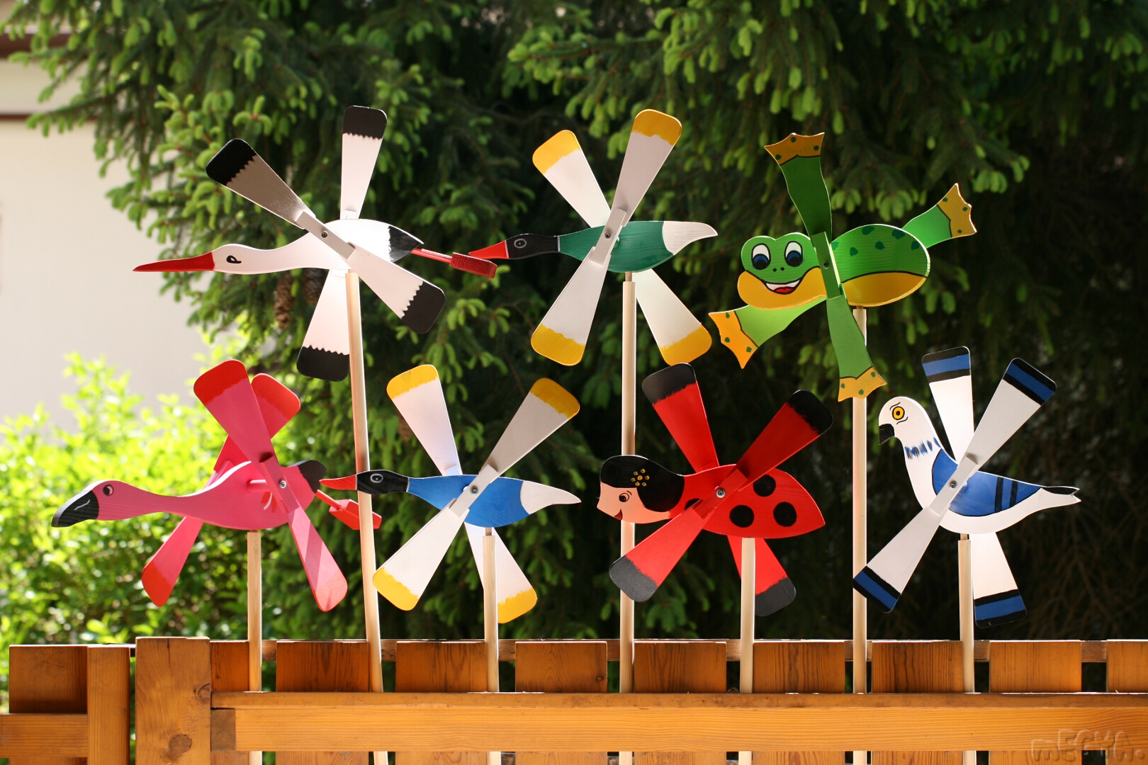 A gyerekek imádják ezeket a színes karaktereket, amelyek a szabadba kitéve szinte mindig mozognak, tempósan lapátolnak, vagy egyenesen pörögnek! A nagyobbaknak is hasznos dolog rájuk tekintve megtudni, hogy milyen erős a légmozgás. A házikertekben pedig még madárijesztőként is szolgálhatnak!